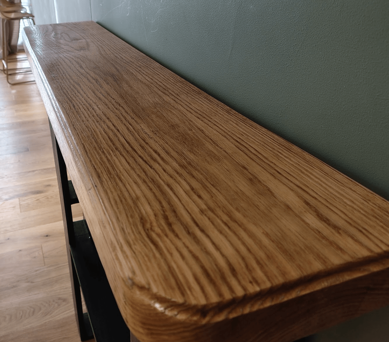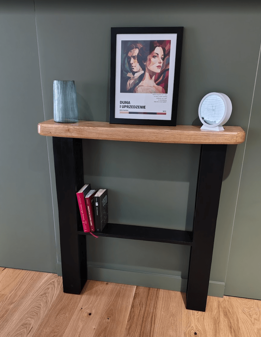 Dębowy blat - masywny, z zaokrąglonymi rogami.
