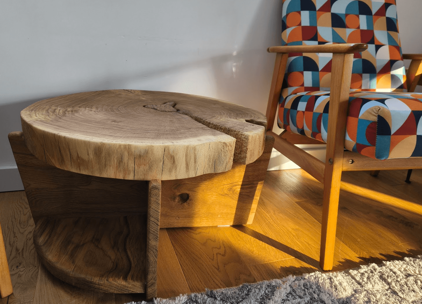 Ten plaster leżał w warsztacie miesiącami. Sześćdziesiąt lat dąb rósł, żeby skończyć jako... co? Blat? Kolejny prostokątny stół, który udaje, że drewno nie ma pamięci?