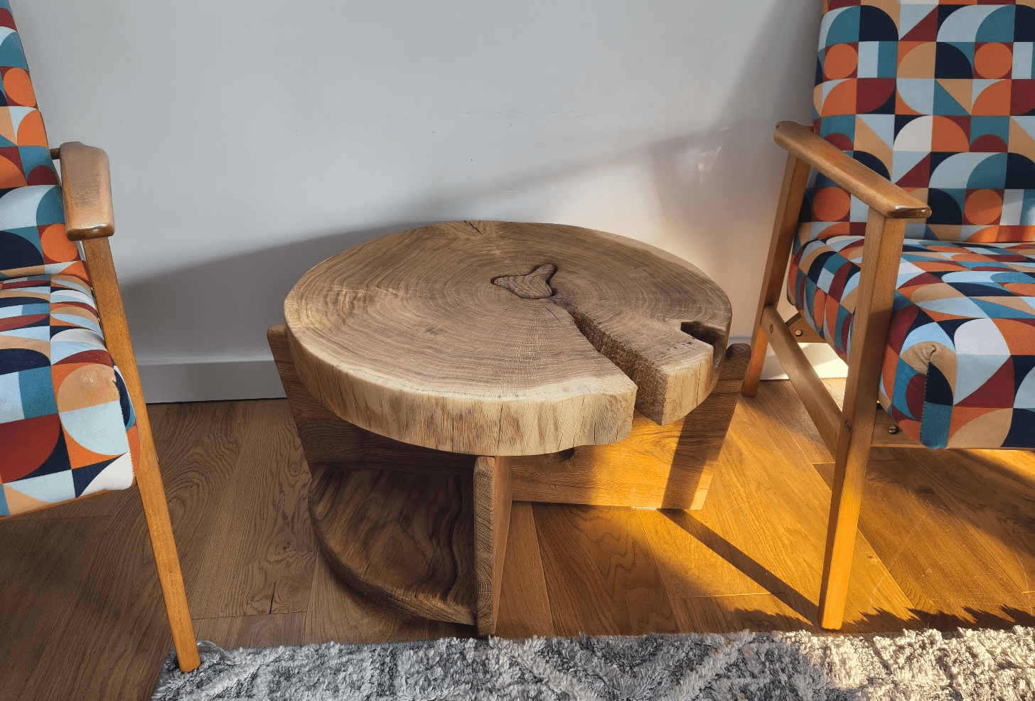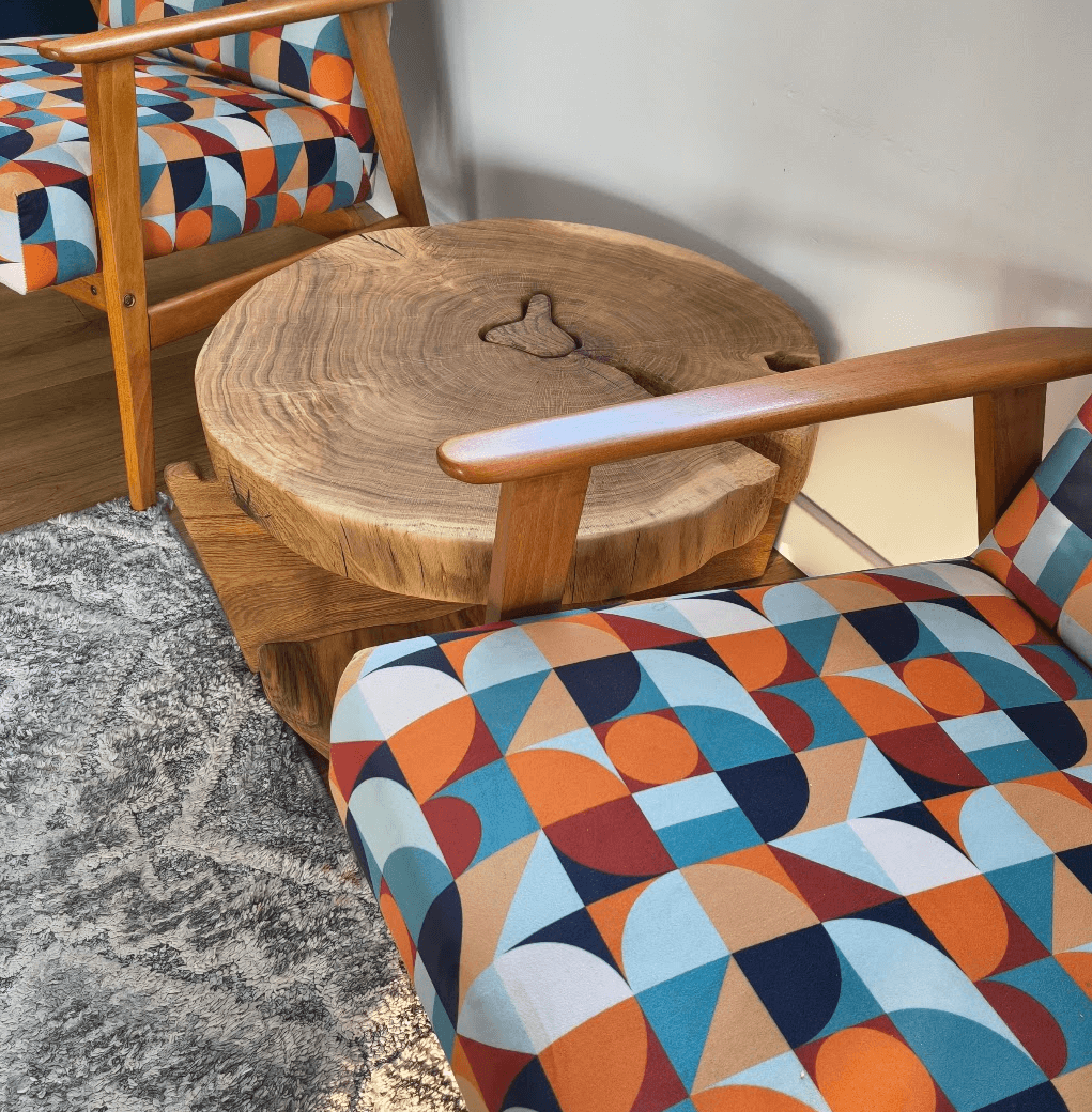 Da się tam położyć książkę. Da się odłożyć pilot. Ale to nie półki dla rzeczy. To rzeźba, która zgadza się być użyteczna.